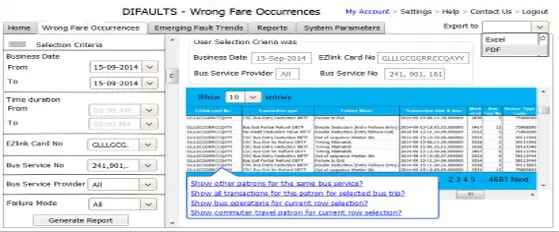 - Automatically discover wrong fare incidents and flag commuter’s cards affected by wrong fare charging; and